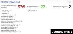 По данным Минздрава Казахстана, по состоянию на 31 марта зарегистрировано 336 заболевших коронавирусной инфекцией. Из них 22 выздоровели. Зарегистрировано 11 новых случаев: 10 — в Кызылординской области, один — в Павлодарской. Один пациент скончался в Нур-Султане.
